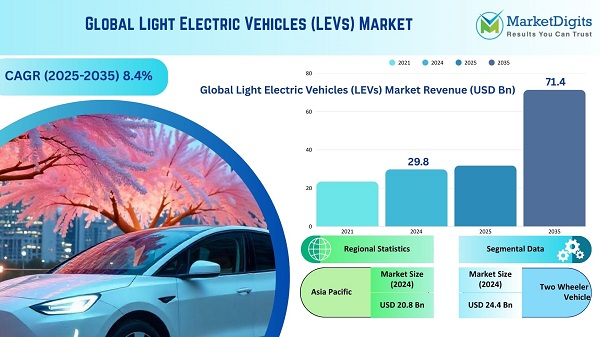 The global Light electric vehicle (LEV) market was valued at USD 29.8 Bn in 2024.